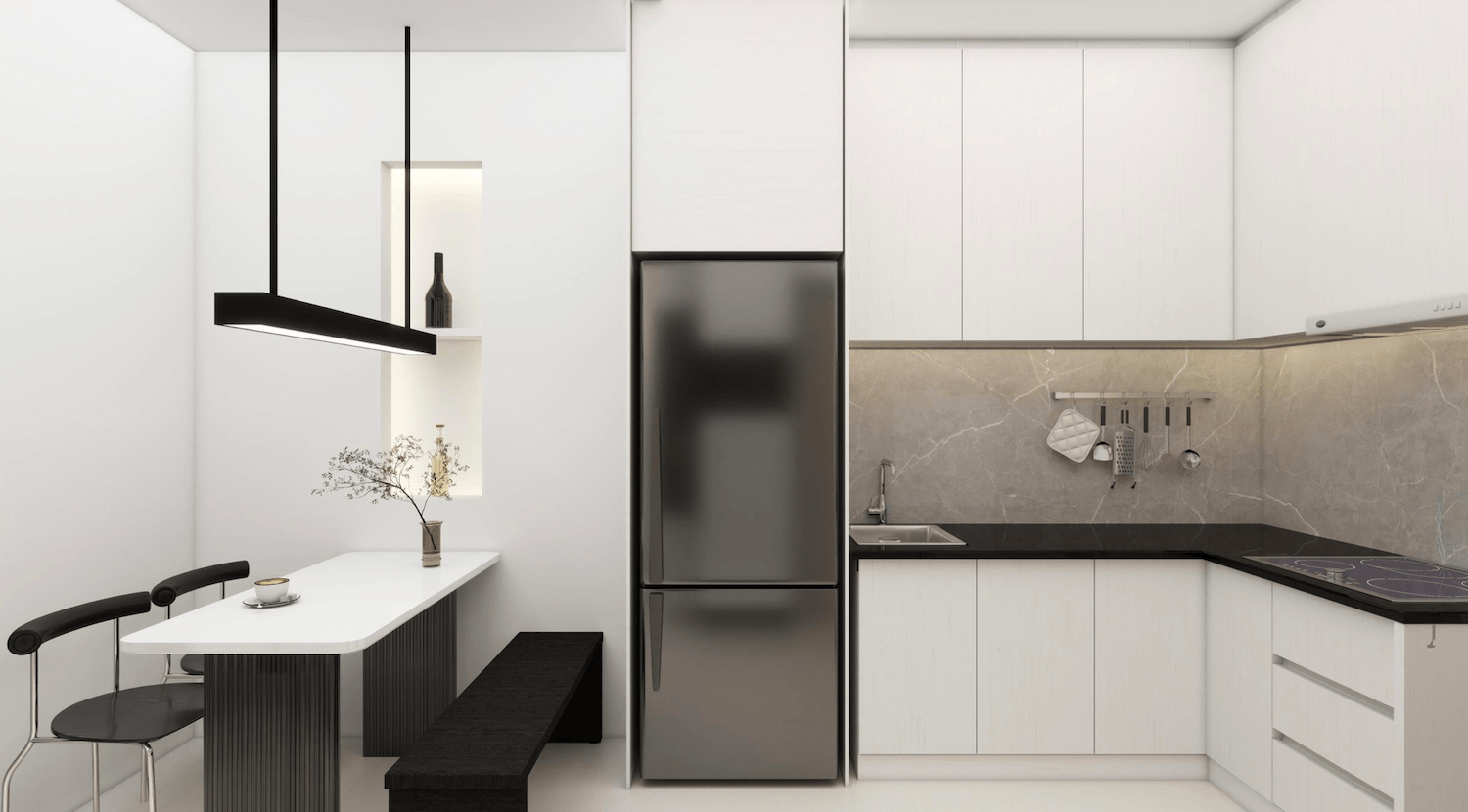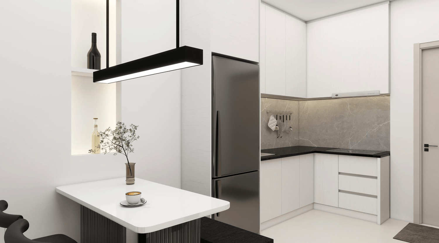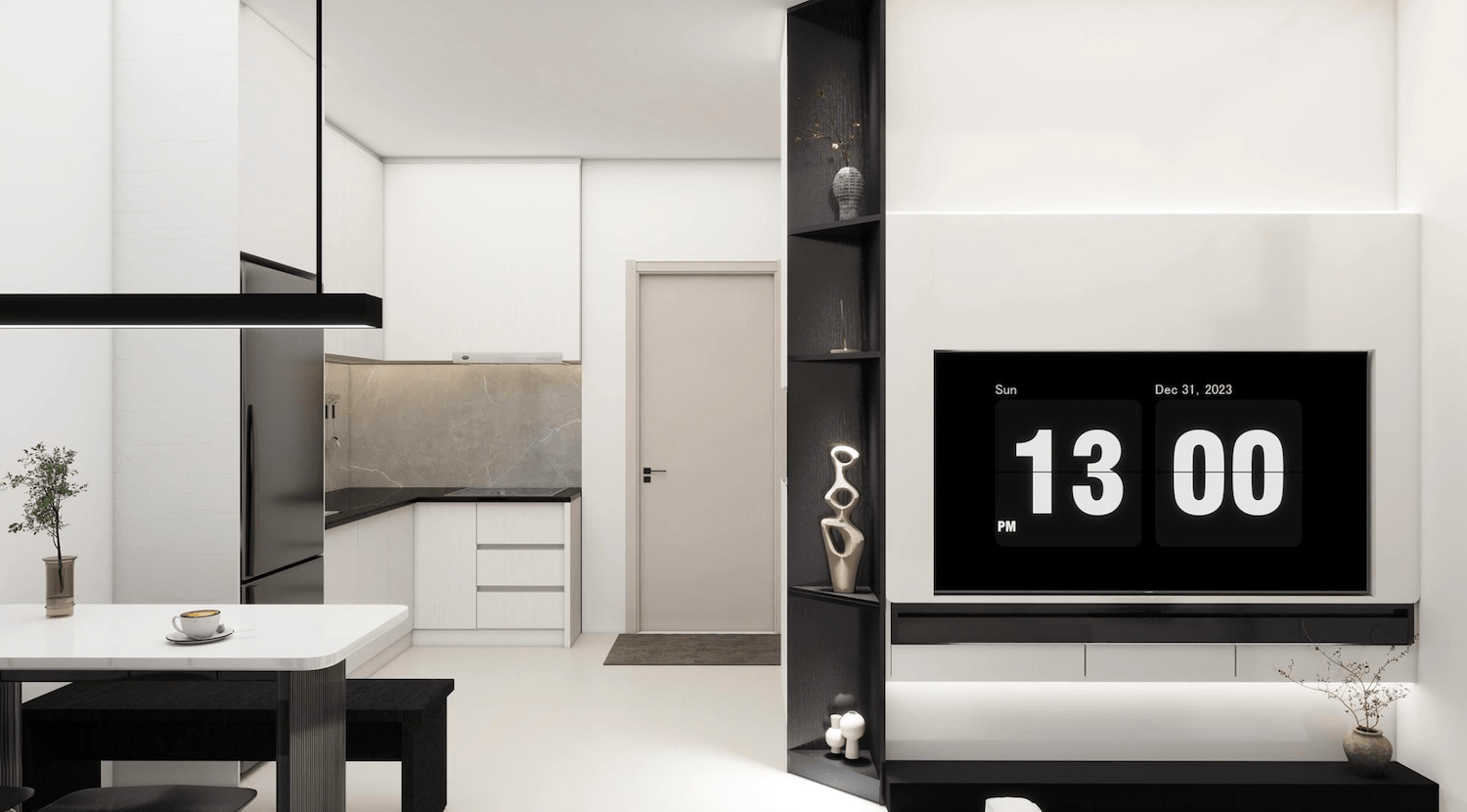 Clean and pure color palette create an uncluttered space where every detail is intentional.